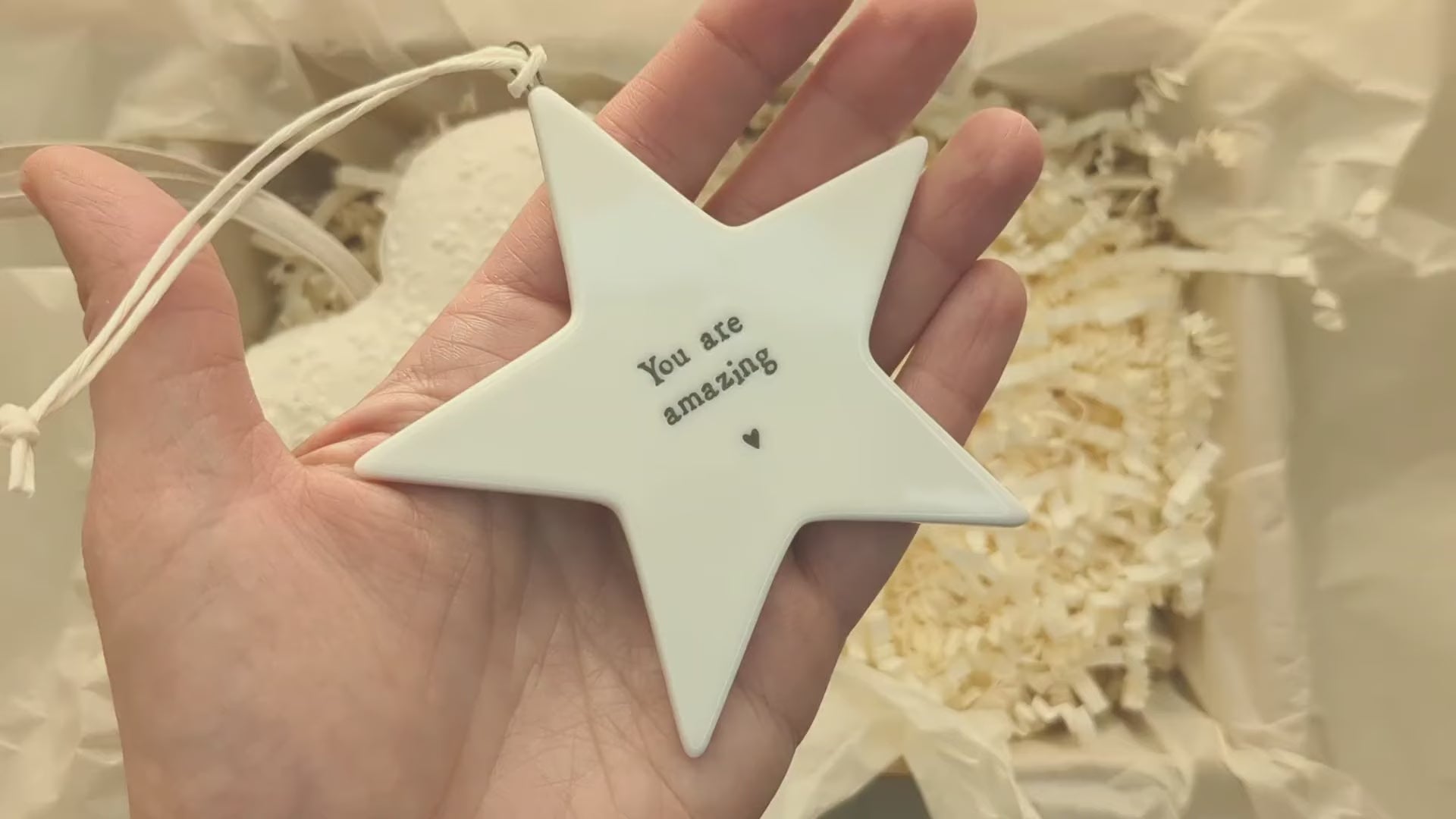 Gift box also includes a porcelain hanging star, with the text, 'You are amazing'. (approx. 9.4 x 9.4 x 0.5cm)