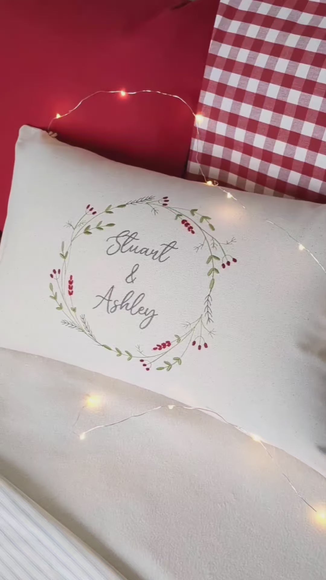 Personalised Embroidered Christmas Cushion with Sustainably Sourced Threads